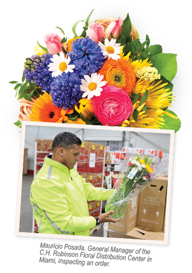 Each year, C.H. Robinson meets the surge in Mother’s Day flower demand by importing the freshest blooms from Ecuador and Colombia. Our distribution center at the Miami International Airport ensures swift handling, and our quick processing time gets fresher flowers to stores, minimizing transit times and maximizing freshness.